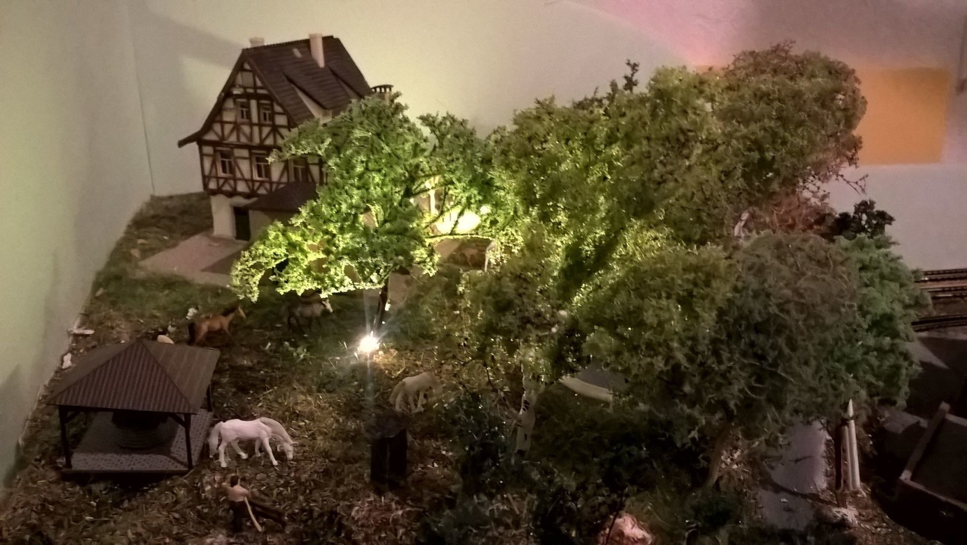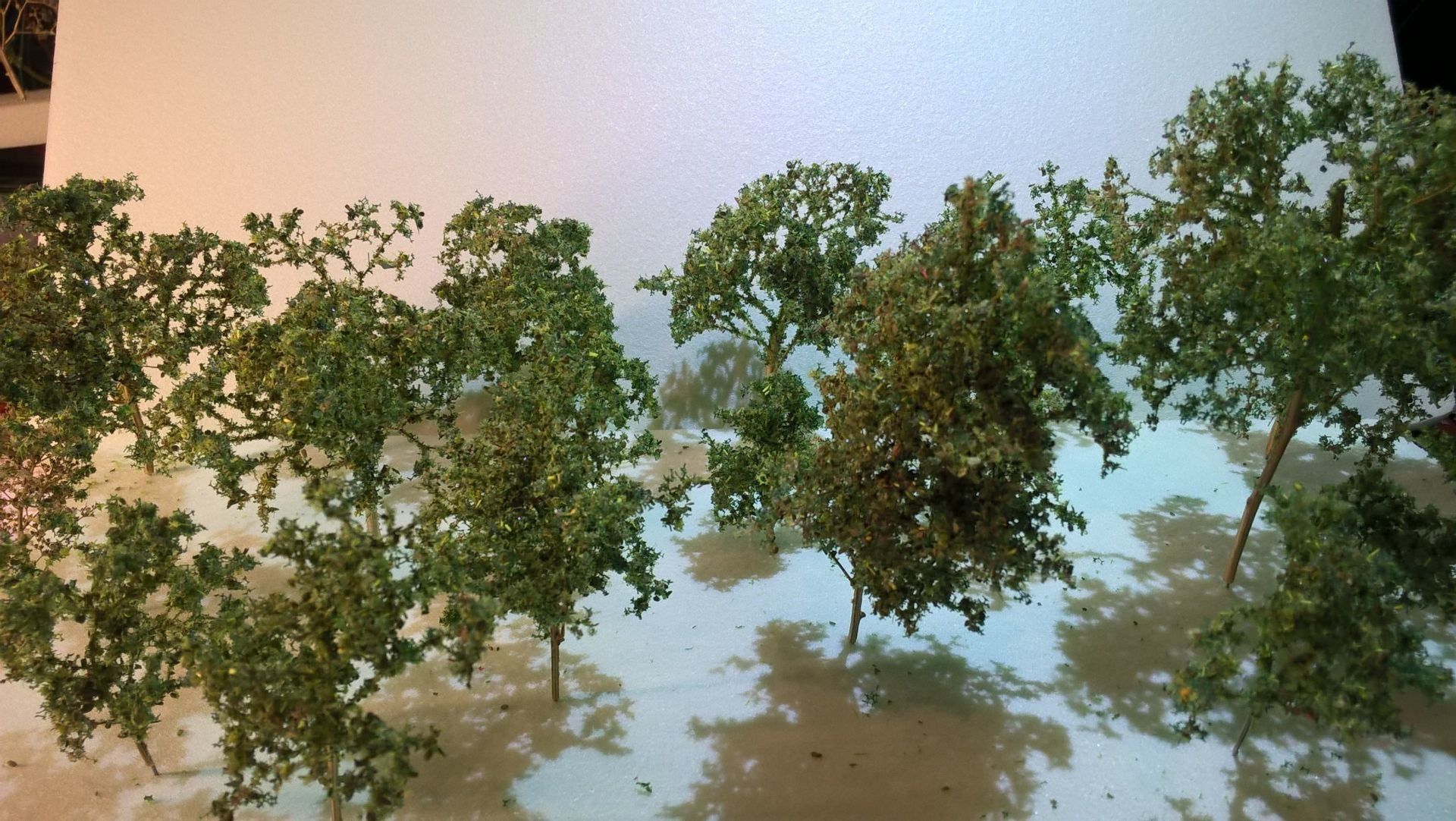 Gekaufte Bäume haben eher sehr wenig mit echten Bäumen gemeinsam. Daher verwende ich solche (wenn überhaupt) nur im hinteren Teil meiner Anlage, gemischt mit selbst gebauten Bäumen.