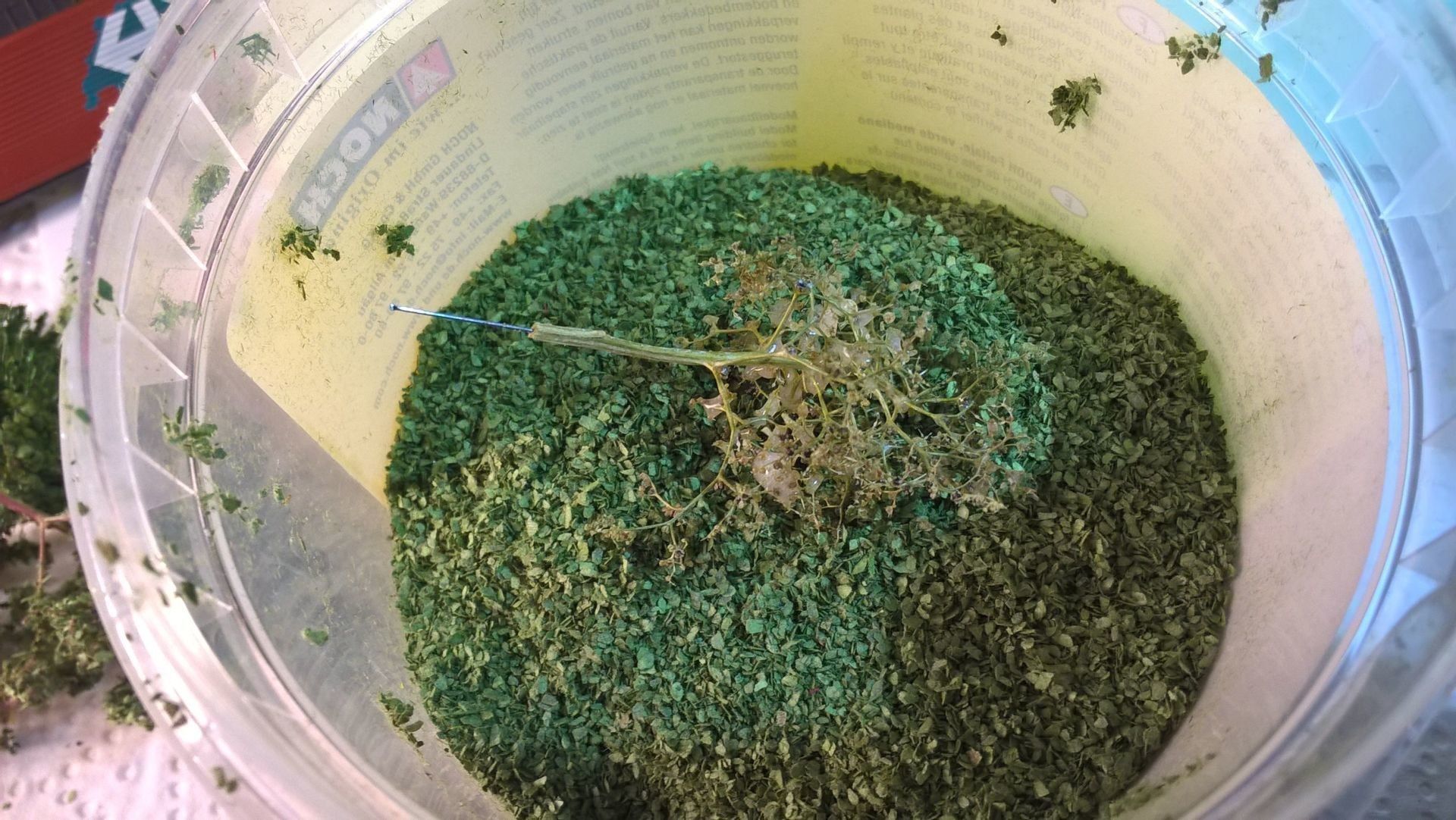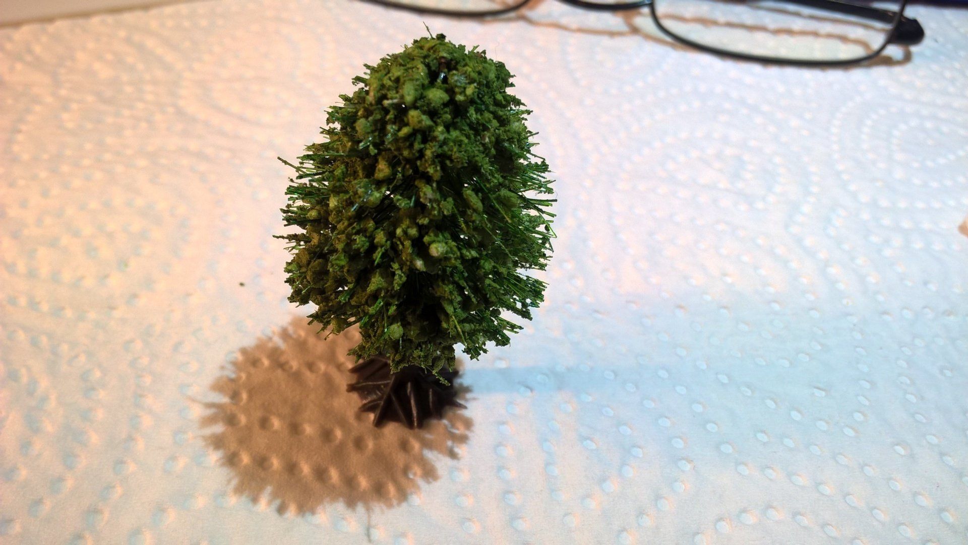 Ich verwende hierzu Seemoos (was es im Netz günstig gibt). In der Bildergalerie zeige ich ein Beispiel wie aus dem Rohmaterial ein Baum entsteht, und Beispiele wie sie auf der Anlage wirken.