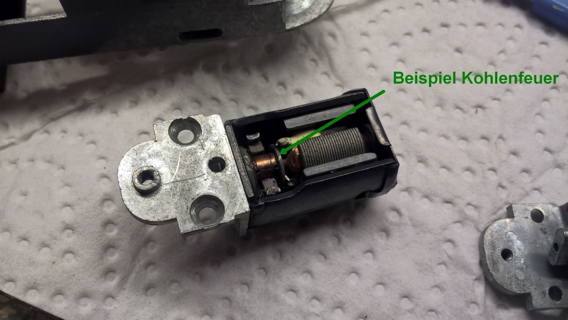 Sieht man beim Testlauf des Motors "Kohlenfeuer", sollte man die Kohlen entweder gründlich säubern, bzw. ersetzen.