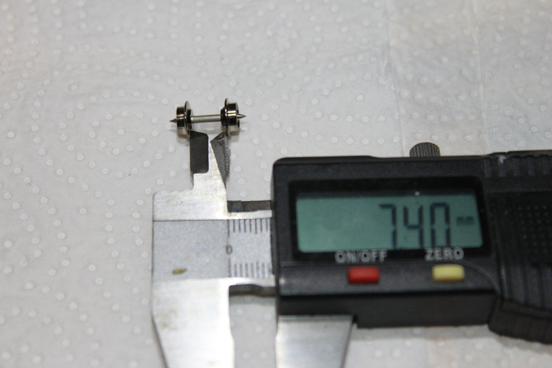 Der Radabstand einer Achse hat sich verschoben. Dies hat meist mechanische Ursachen. Oft passiert dies durch Tauschen von Zugzusammenstellungen. Man nimmt Waggons zur Hand, setzt diese (nicht immer sehr behutsam) an anderer Stelle auf die Gleise oder von der Anlage. Dabei kann es eben zu solchen mechanischen Ursachen führen, so dass der Radabstand sich verschiebt. Meist passiert das über einen längeren Zeitraum und man da schon mal ins Grübeln nach der Ursache kommt. Ist der Radabstand einer Achse zu klein oder zu groß, läuft diese an einer Weiche auf und es kommt zum Entgleisen. Die Radabstände variieren von Hersteller zu Hersteller und werden am einfachsten mit den Abständen der übrigen Radsätze eines Waggons oder einer Lok verglichen. Der häufigste Innenabstand liegt bei 7,40 mm.