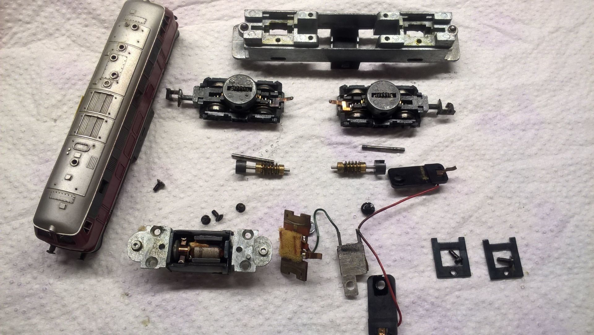 Häufig haben diese keinen Defekt im klassischen Sinne. Wenn man diese Loks in ihre Einzelteile zerlegt und sich die jeweiligen Teile näher betrachtet, ist die Ursache sehr häufig Verschmutzung. Eine gründliche Reinigung schafft hier meist Abhilfe.