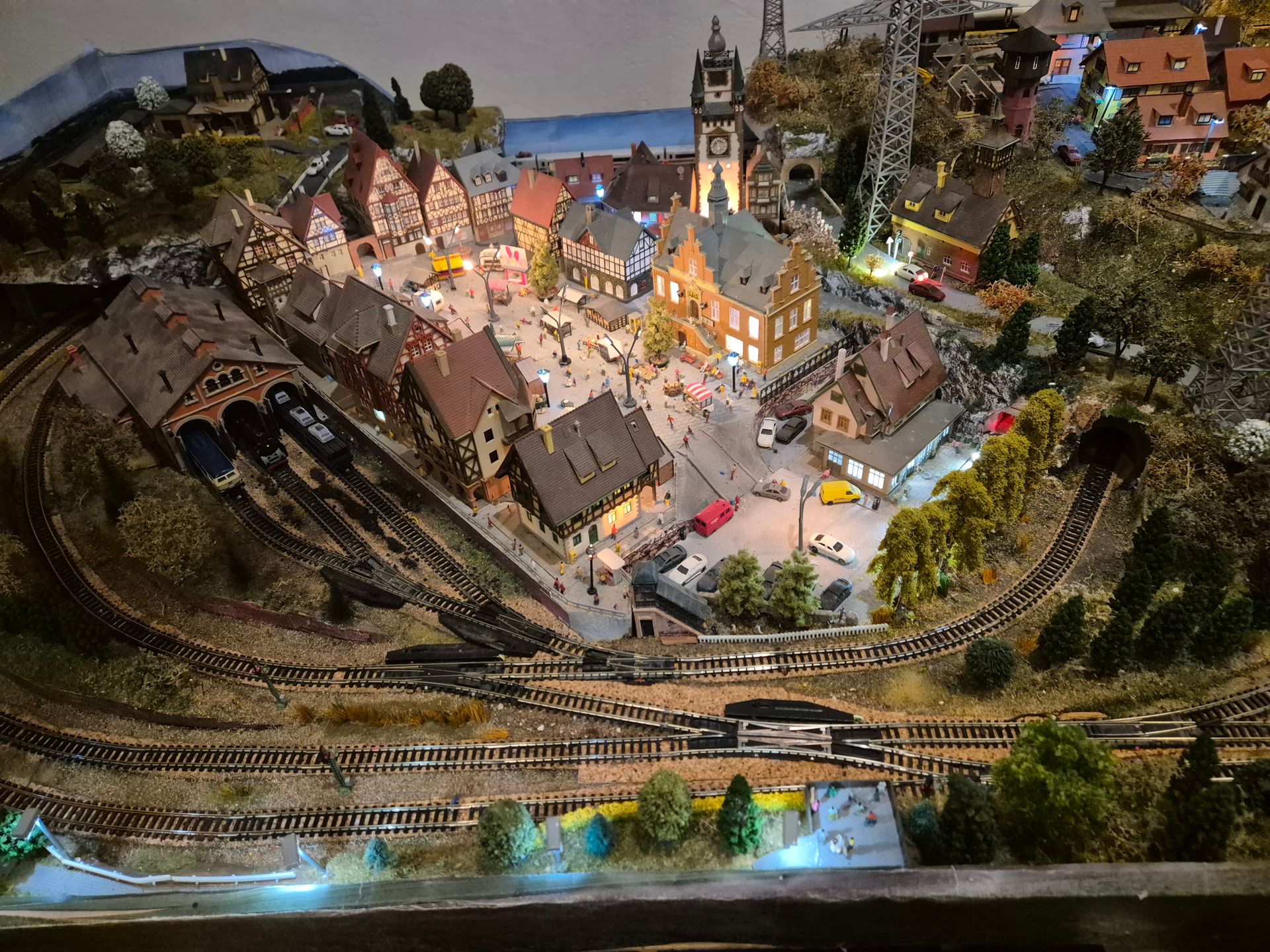 Um das Ganze etwas realistischer zu gestalten (wobei einem bei Spur N doch viele Grenzen gesetzt werden), habe ich einen Großteil meiner Autos mit LEDs ausgerüstet. Manche, wie Feuerwehr oder Lieferwagen wurden mit Attiny Chips ausgerüstet um einen Warnblinker oder Blaulicht betreiben zu können.