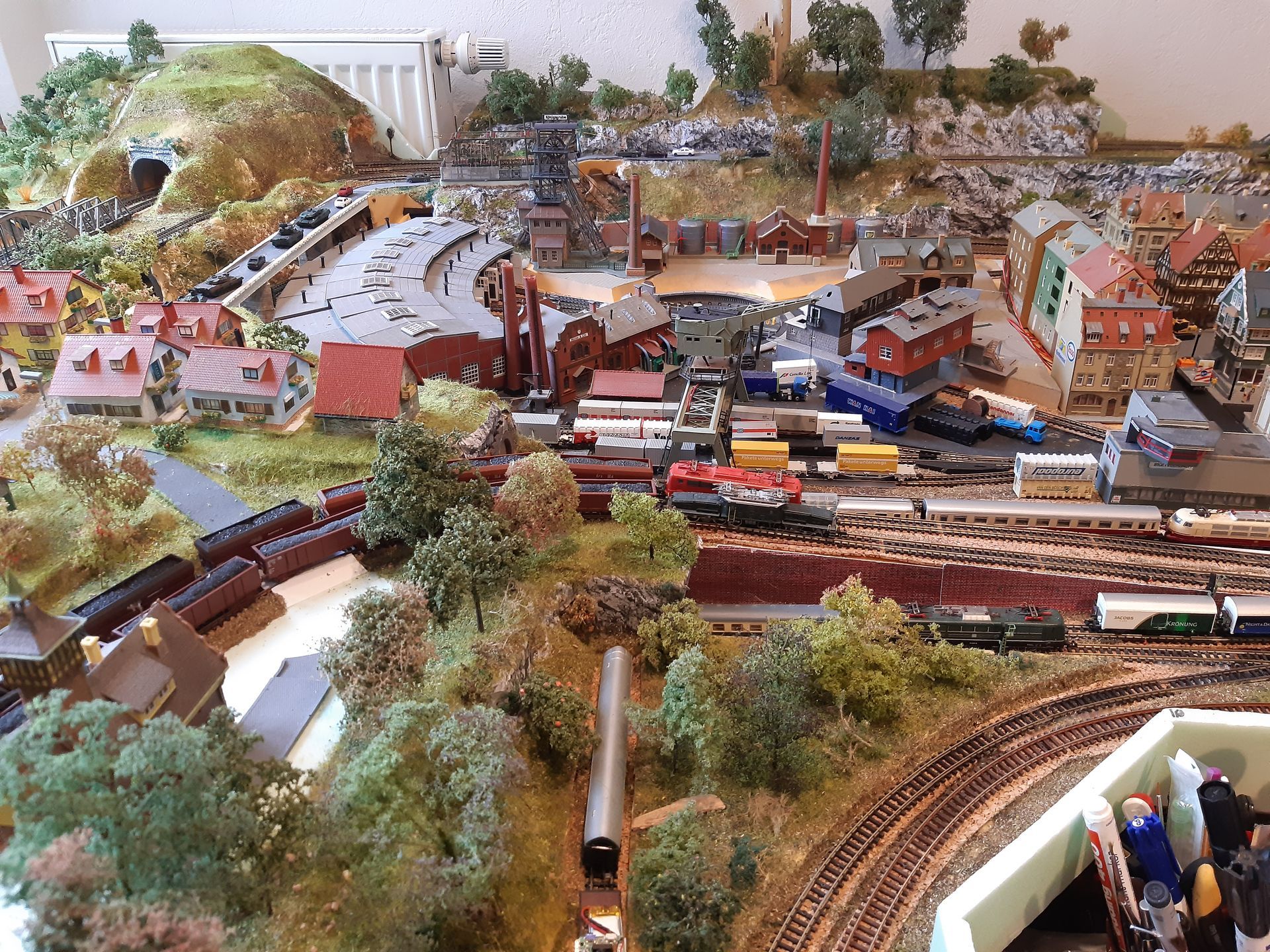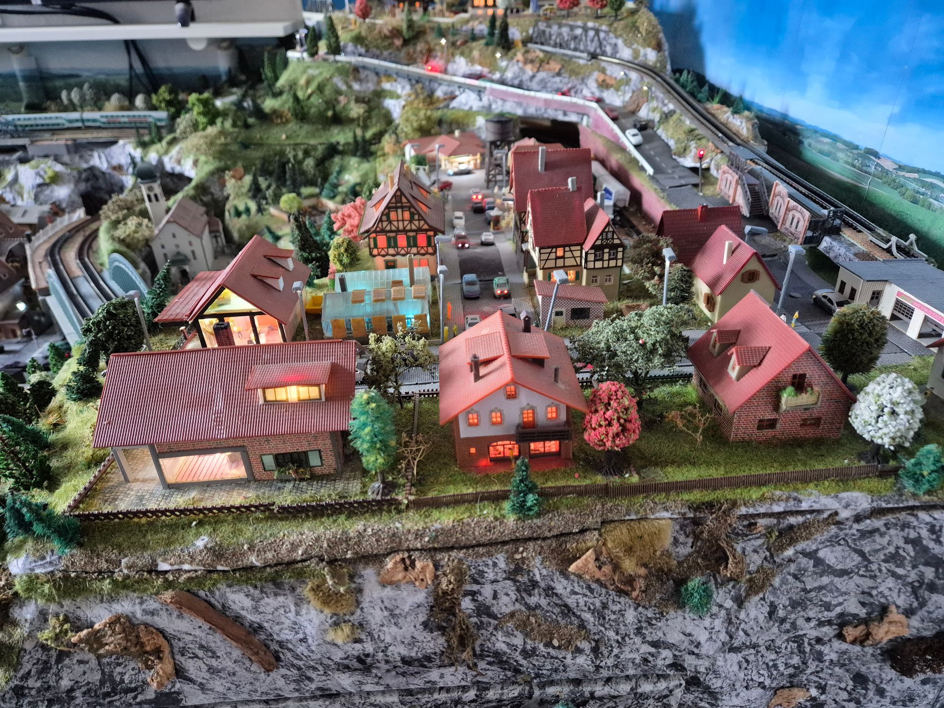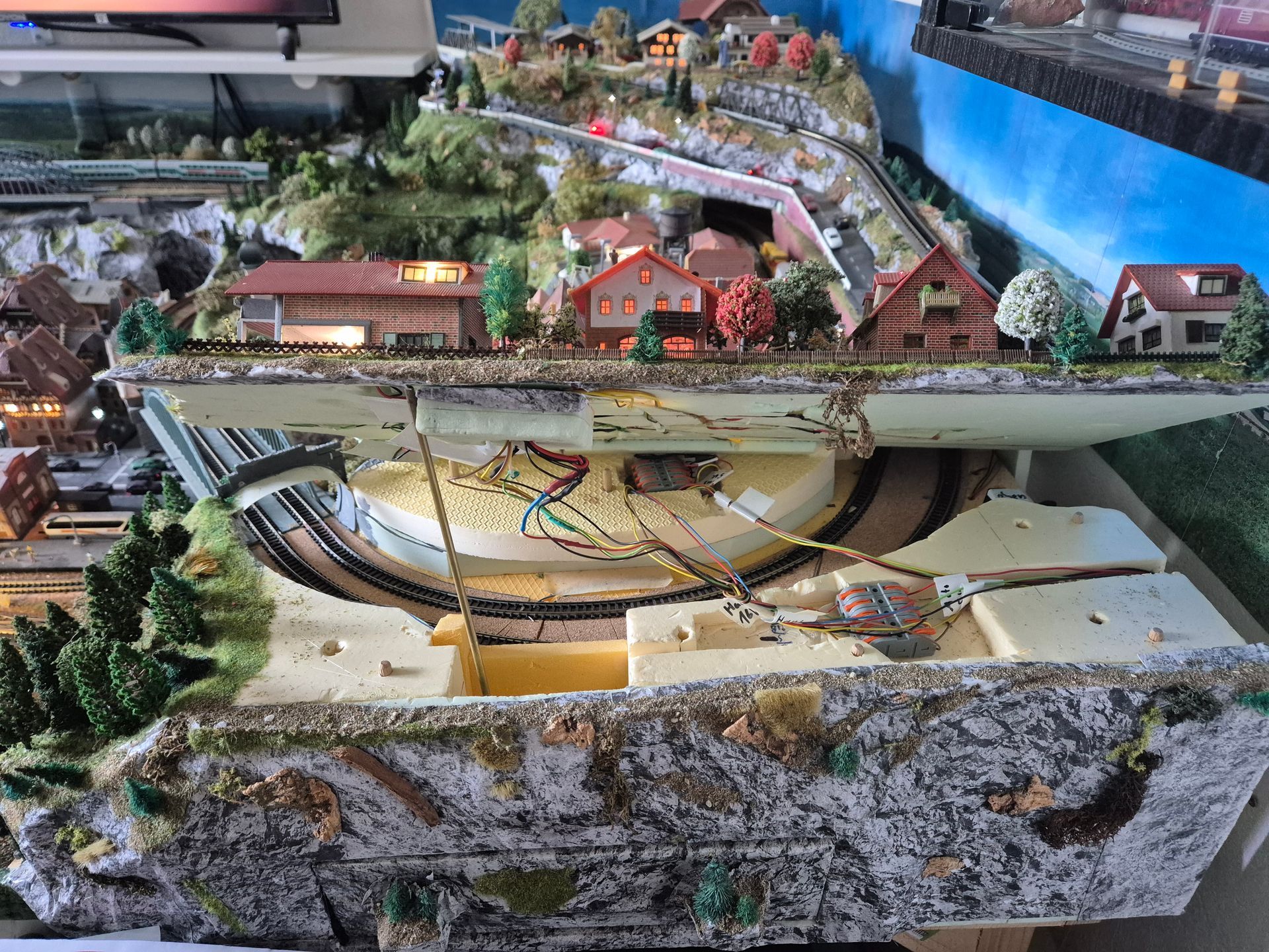 Also wurde der Umbau genutzt viele Landschaftsteile so zu konstruieren, dass ganze Berge von der Anlage genommen werden können. Besonders in schwer zugänglichen Tunnel ist dadurch besser an eventuell entgleiste Loks und Wagons zu kommen.