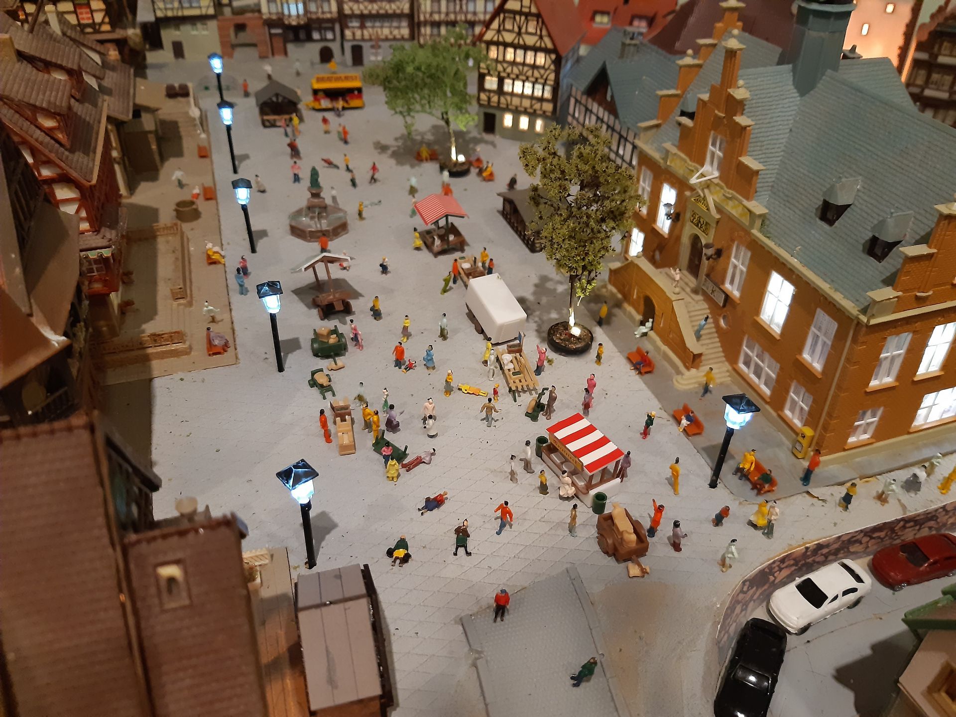 Auch alle Straßenlaternen habe ich selber gebaut, was die Kosten drastisch reduziert hat. Zum Vergleich: Eine Straßenlaterne kostet zirka 7,50€, selbst gebaut: Zeit und zirka 10Cent pro Stück.
